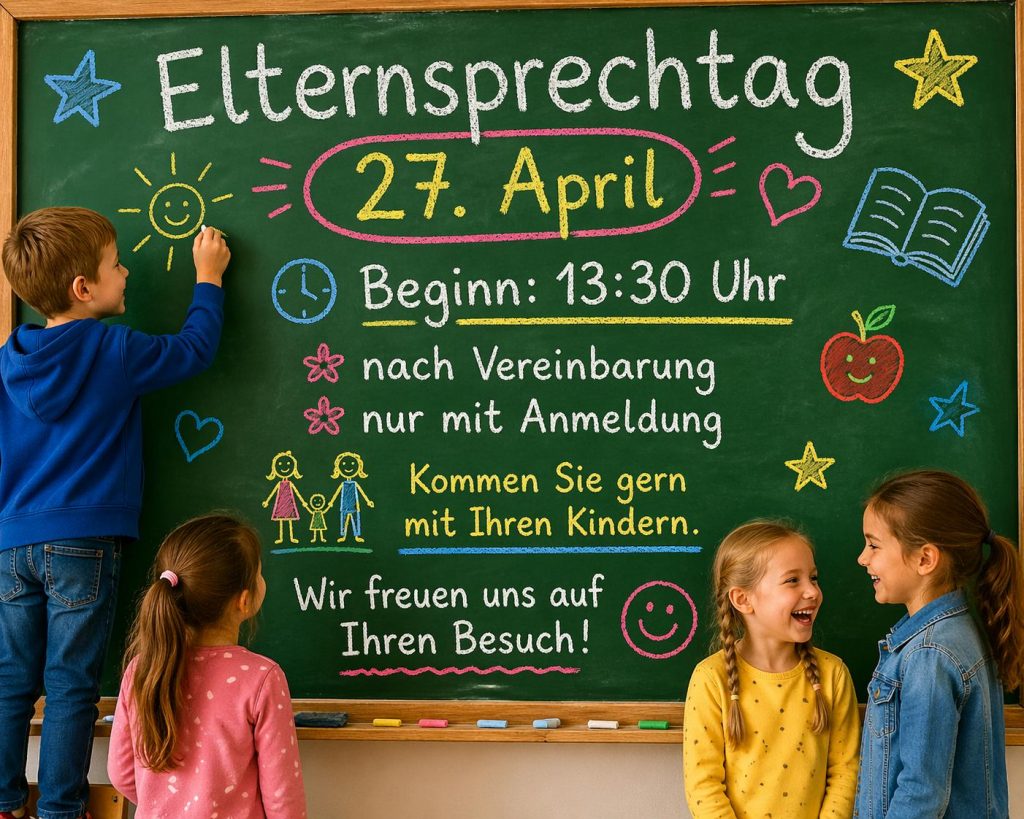 Nach den Ferien freuen wir uns nicht nur auf ein gesundes Wiedersehen, sondern auch auf den persönlichen Austausch mit Ihnen beim Elternsprechtag am 27. April 2026 in der Zeit von 13:30 Uhr bis 18:00 Uhr.